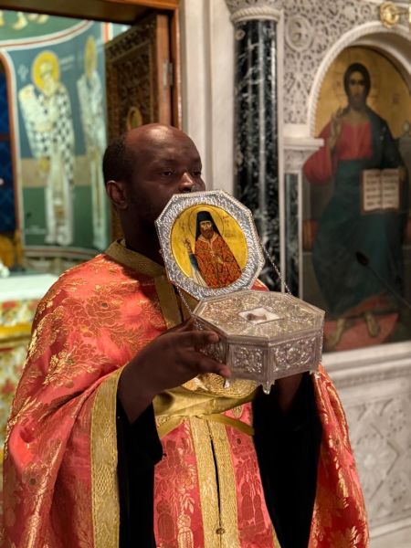 Στην ιερά ακολουθία χοροστάτησε ο Θεοφιλέστατος Επίσκοπος Στρατονικείας κ. Στέφανος, ο οποίος και κήρυξε τον θείο λόγο, αναφερόμενος στην αγιασμένη μορφή του Οσίου, στην ταπείνωση, την προσευχή και την αγάπη του προς τον Θεό και τον άνθρωπο.
