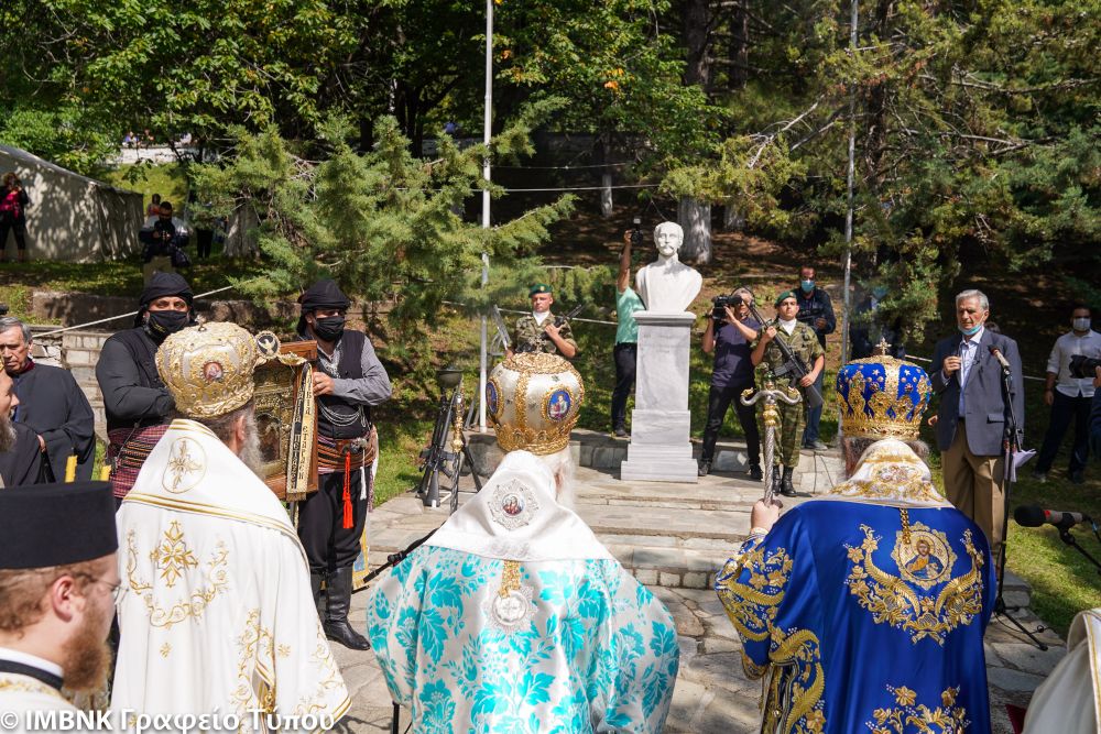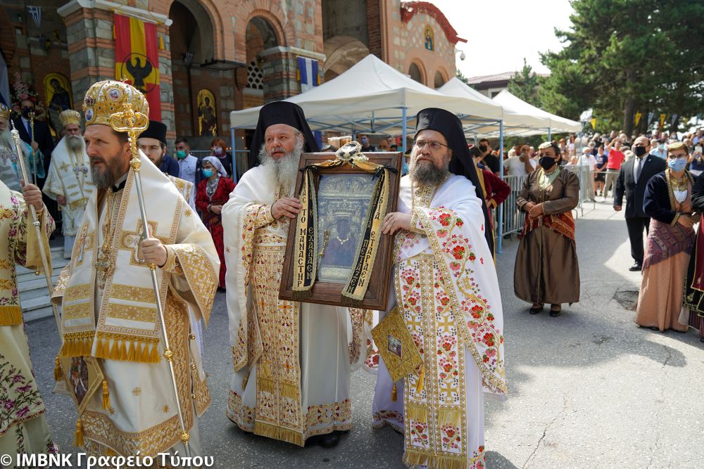 Το Σάββατο 15 Αυγούστου το πρωί εορτάστηκε με λαμπρότητα η θεομητορική εορτή της Κοιμήσεως της Υπεραγίας Θεοτόκου στο Πανελλήνιο Ιερό Προσκύνημα της Παναγίας Σουμελά στην Καστανιά του Βερμίου.