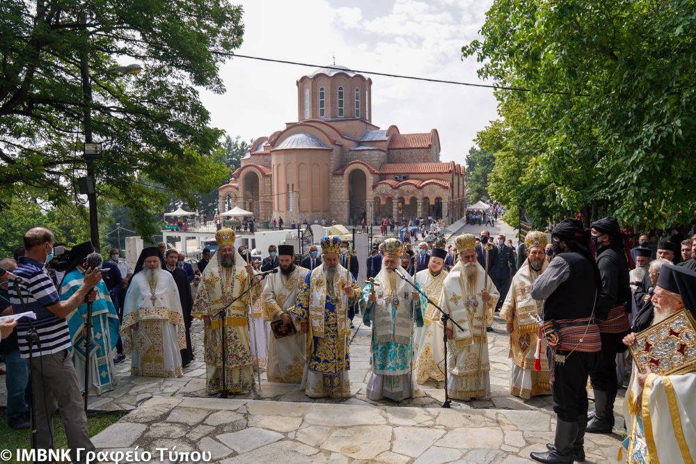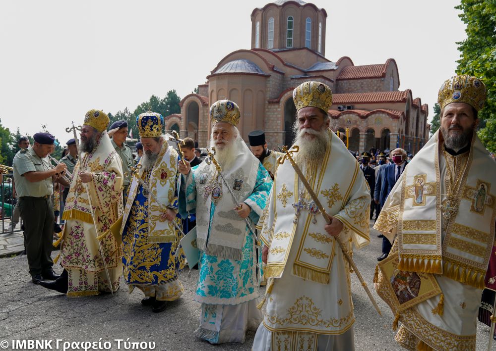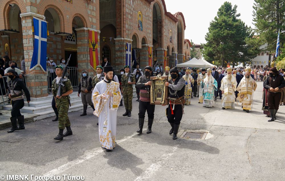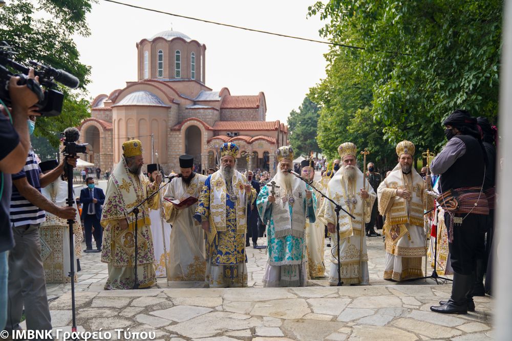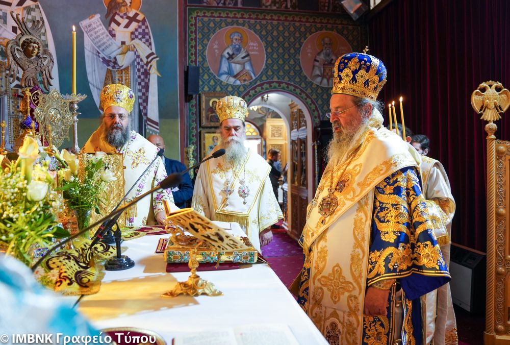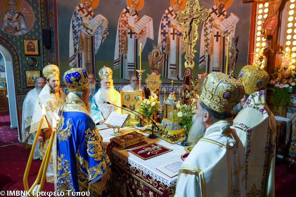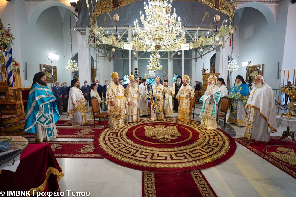 Στο πανηγυρικό συλλείτουργο προεξήρχε ο Σεβασμιώτατος Μητροπολίτης Δράμας κ. Παύλος, ο οποίος νωρίτερα χοροστάτησε στον όρθρο της εορτής, ενώ έλαβαν μέρος οι Σεβασμιώτατοι Μητροπολίτες Άρτης κ. Καλλίνικος, Γλυφάδας, Ελληνικού, Βούλας, Βουλιαγμένης και Βάρης κ. Αντώνιος, Τρίκκης και Σταγών κ. Χρυσόστομος και Βεροίας, Ναούσης και Καμπανίας κ. Παντελεήμων, ο οποίος κήρυξε και το θείο Λόγο.