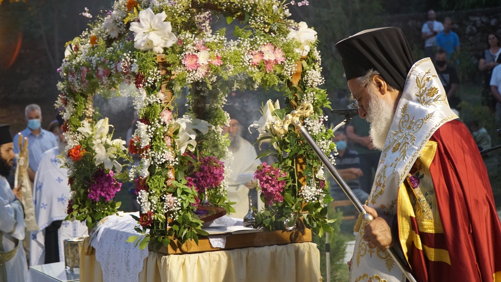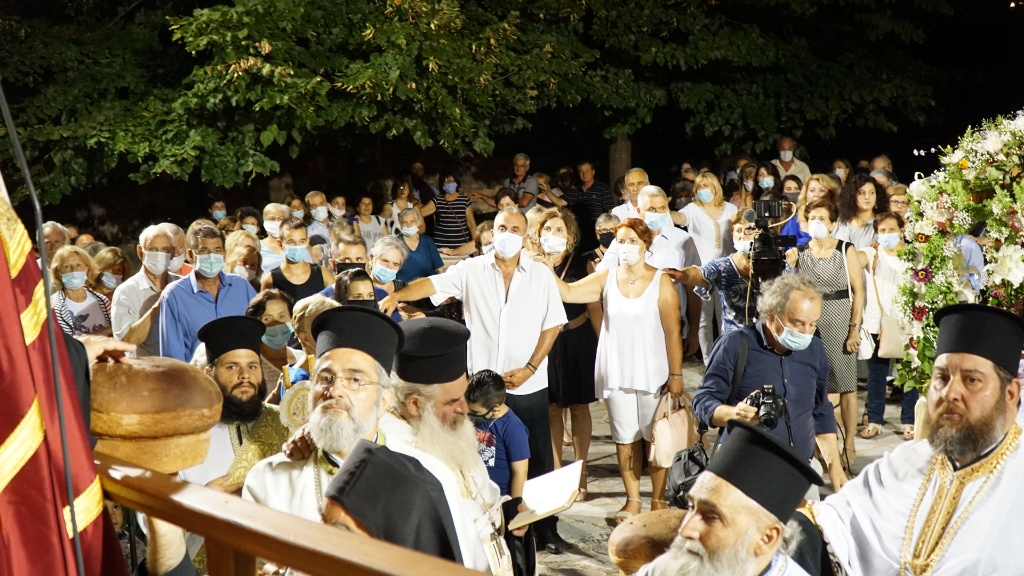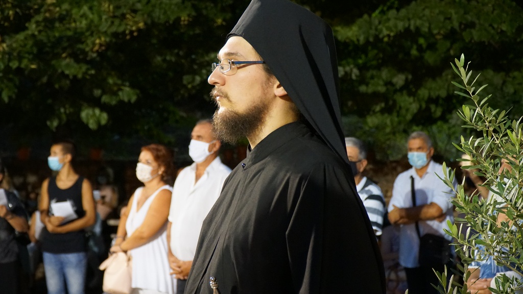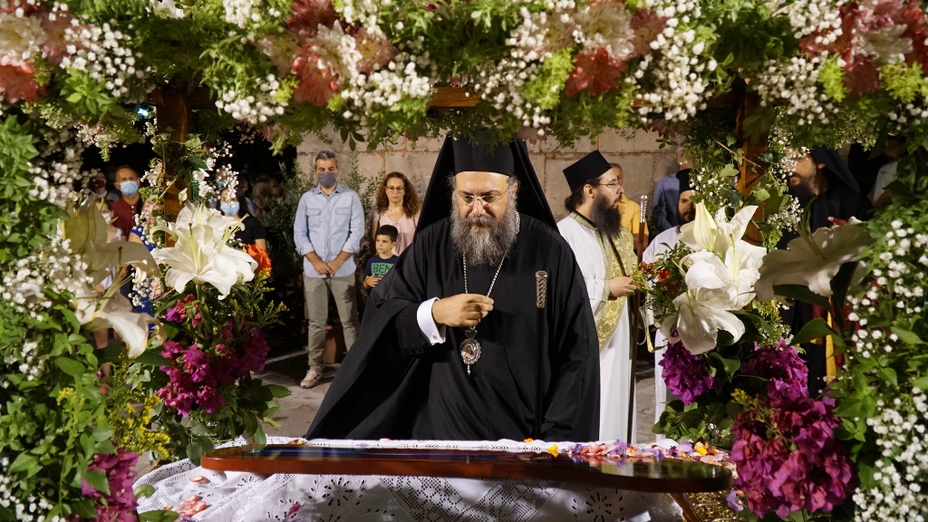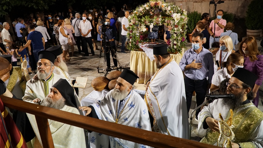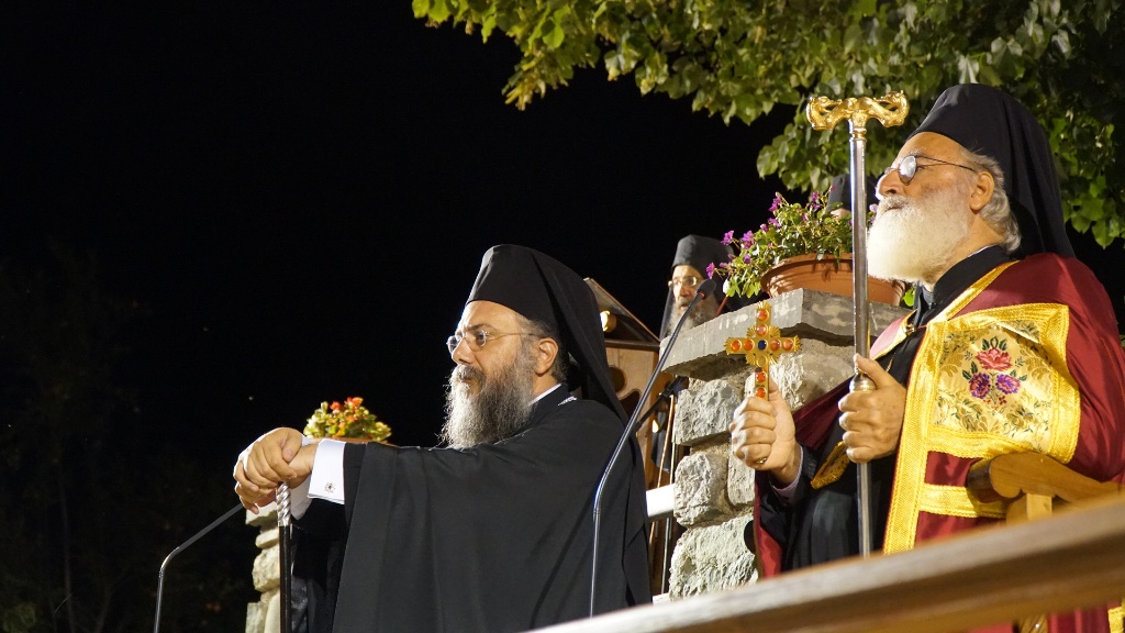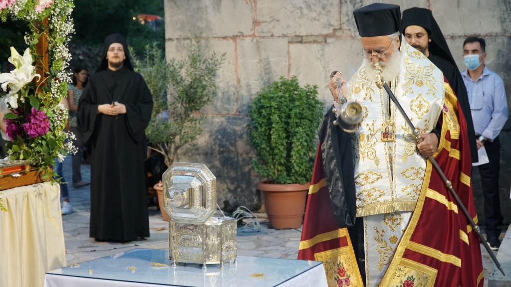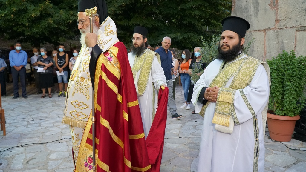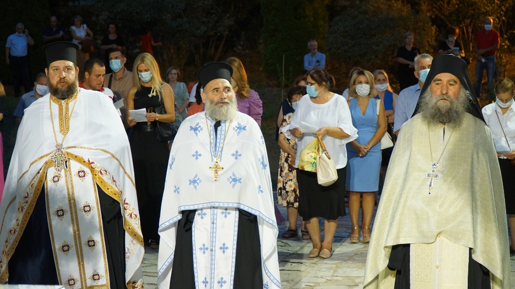 Το Σάββατο 22 Αυγούστου 2020 κατά την Ακολουθία του Εσπερινού Χοροστάτησε ο Σεβασμιώτατος Μητροπολίτης Αρκαλοχωρίου, Καστελλίου και Βιάννου κ. Ανδρέας και συγχοροστάτησε ο Σεβασμιώτατος Μητροπολίτης Τρίκκης και Σταγών κ. Χρυσόστομος, πλαισιωμένοι αμφότεροι από πατέρες της Ιεράς Μονής Δουσίκου και κληρικούς της Ιεράς Μητροπόλεως.