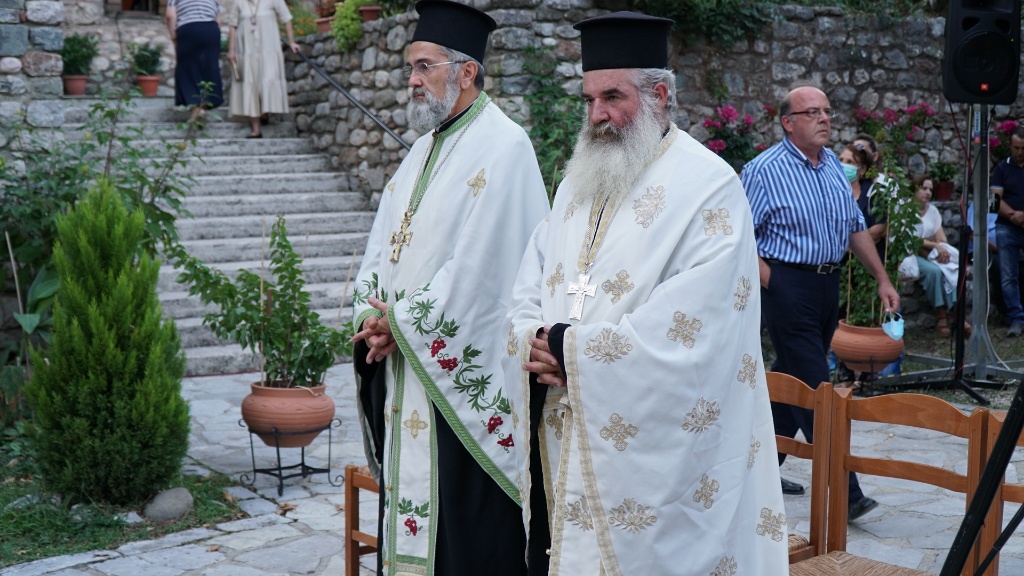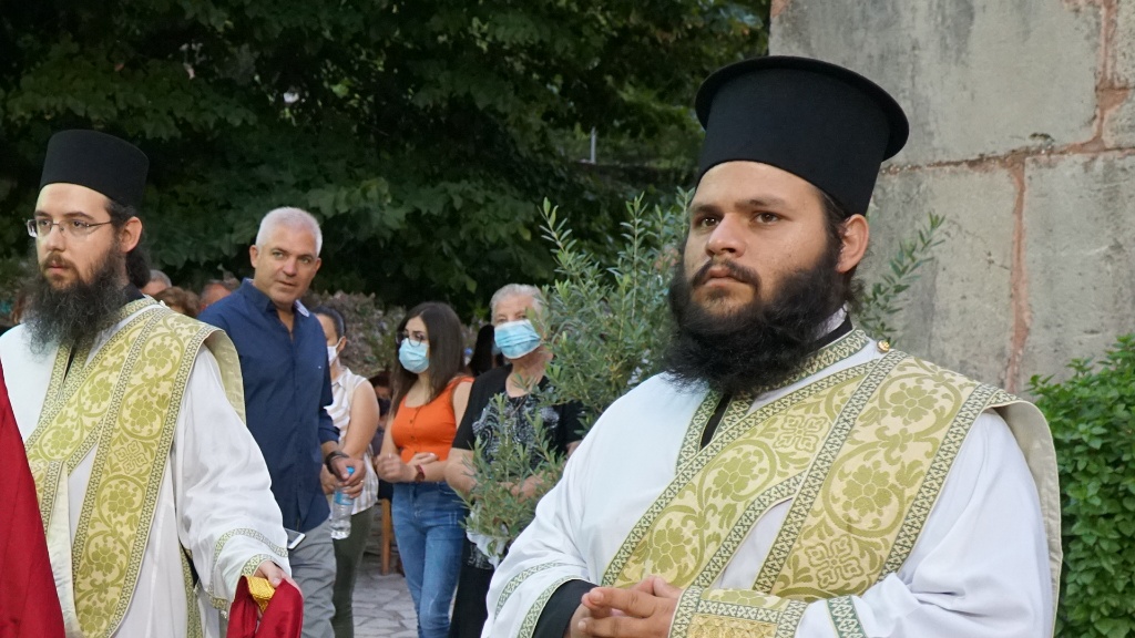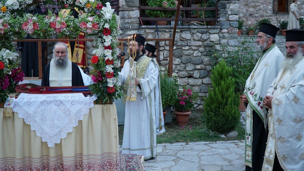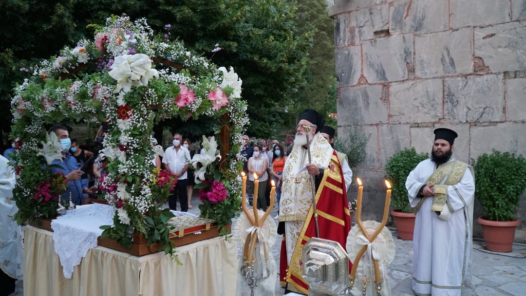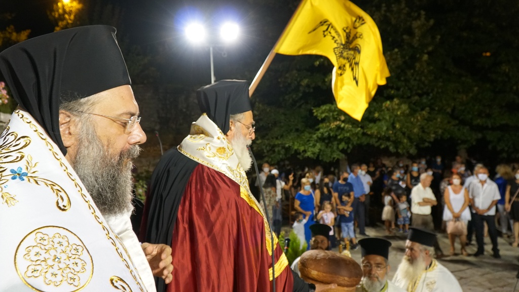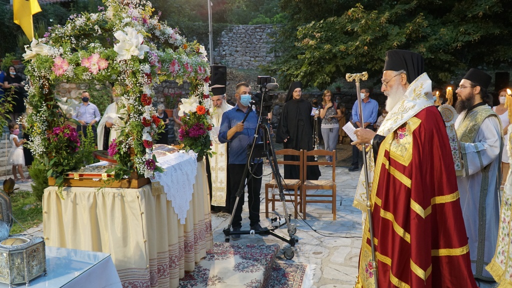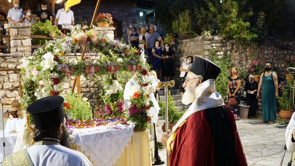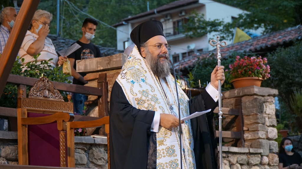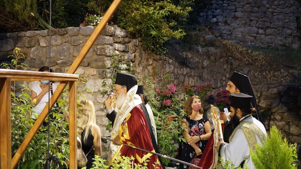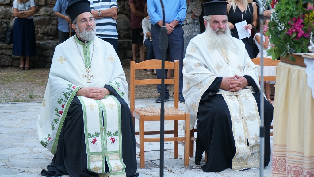 Το Σάββατο 22 Αυγούστου 2020 κατά την Ακολουθία του Εσπερινού Χοροστάτησε ο Σεβασμιώτατος Μητροπολίτης Αρκαλοχωρίου, Καστελλίου και Βιάννου κ. Ανδρέας και συγχοροστάτησε ο Σεβασμιώτατος Μητροπολίτης Τρίκκης και Σταγών κ. Χρυσόστομος, πλαισιωμένοι αμφότεροι από πατέρες της Ιεράς Μονής Δουσίκου και κληρικούς της Ιεράς Μητροπόλεως.