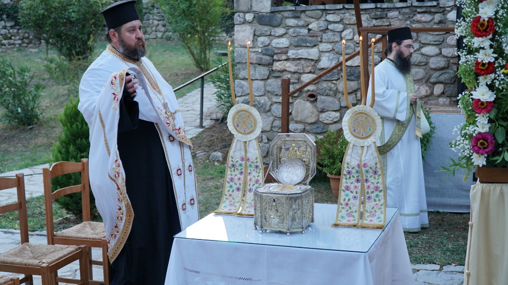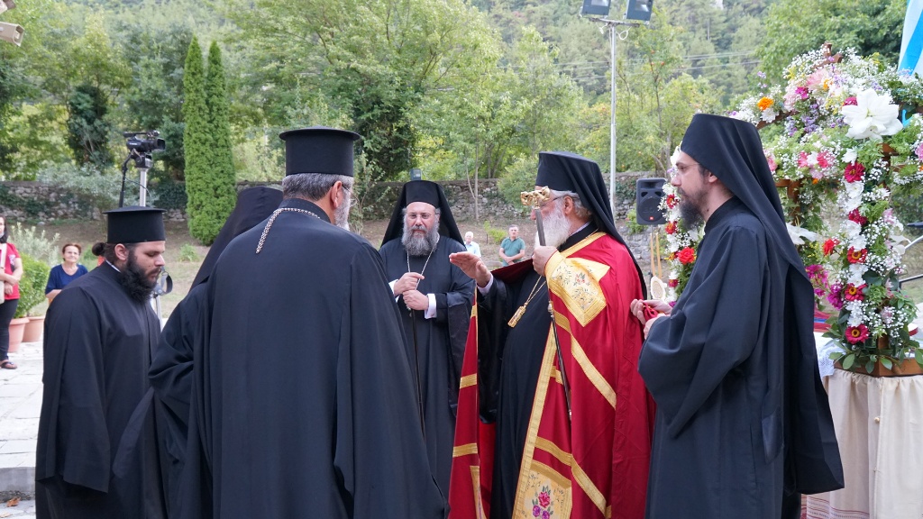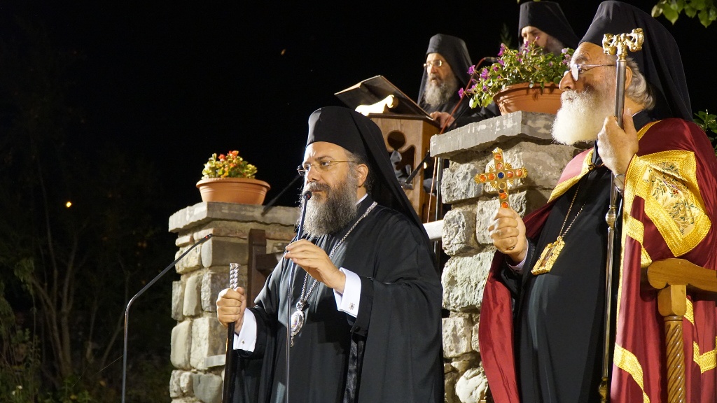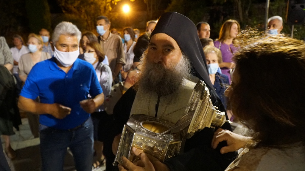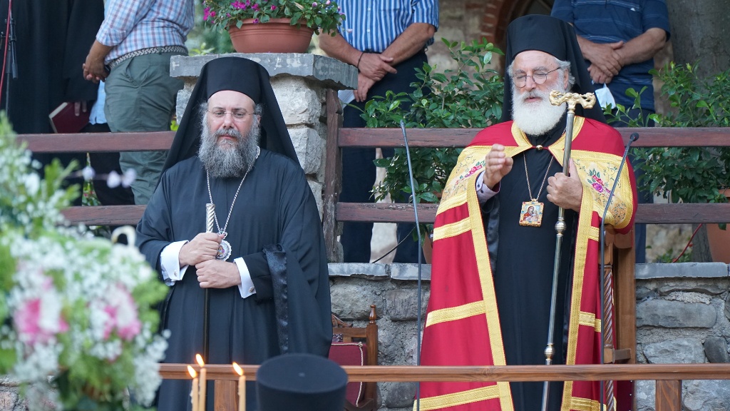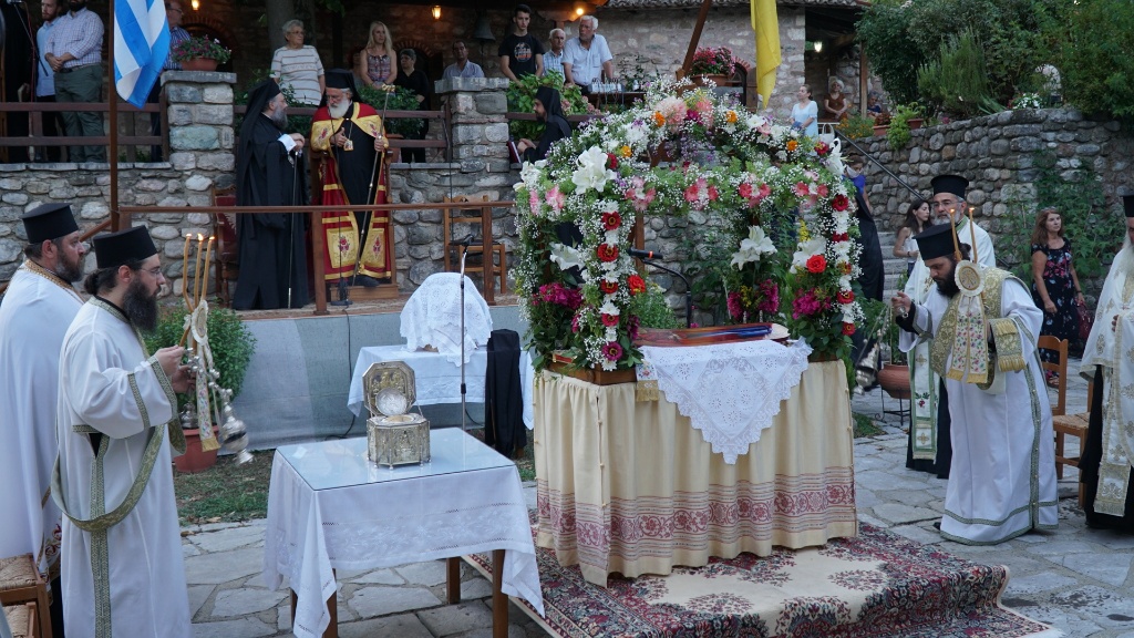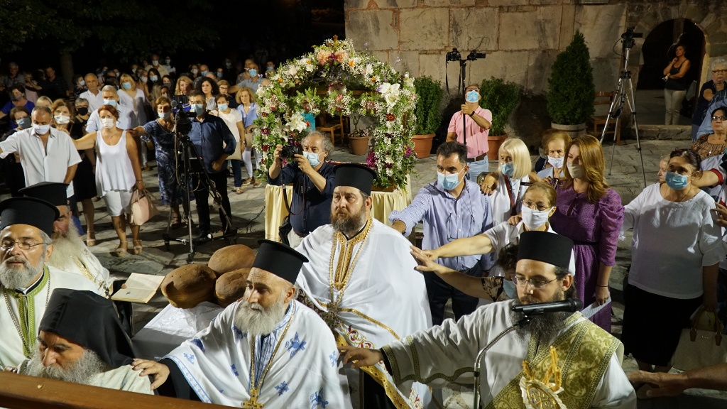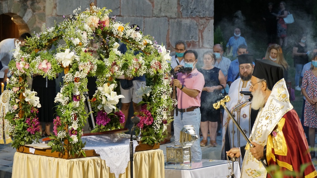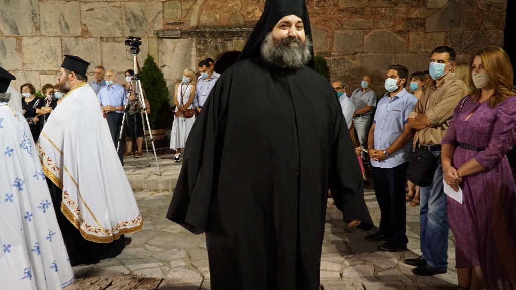 Το Σάββατο 22 Αυγούστου 2020 κατά την Ακολουθία του Εσπερινού Χοροστάτησε ο Σεβασμιώτατος Μητροπολίτης Αρκαλοχωρίου, Καστελλίου και Βιάννου κ. Ανδρέας και συγχοροστάτησε ο Σεβασμιώτατος Μητροπολίτης Τρίκκης και Σταγών κ. Χρυσόστομος, πλαισιωμένοι αμφότεροι από πατέρες της Ιεράς Μονής Δουσίκου και κληρικούς της Ιεράς Μητροπόλεως.