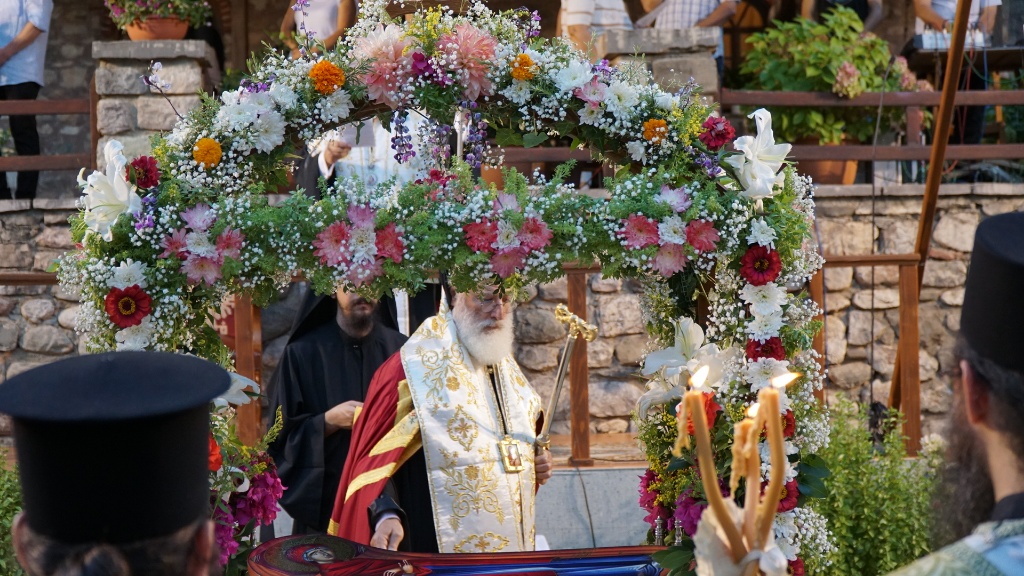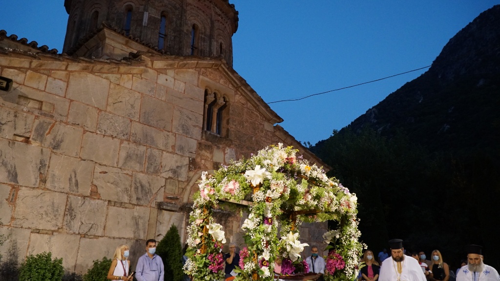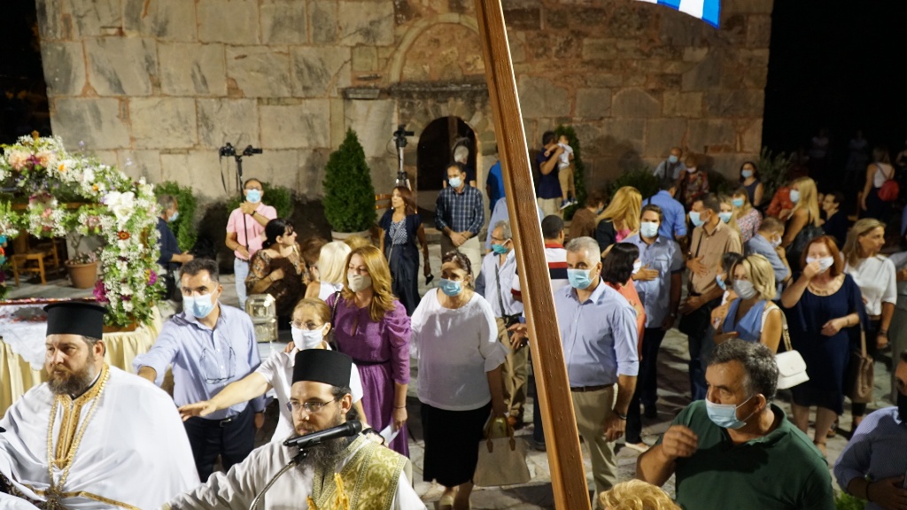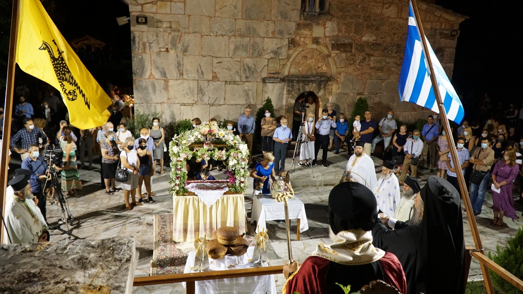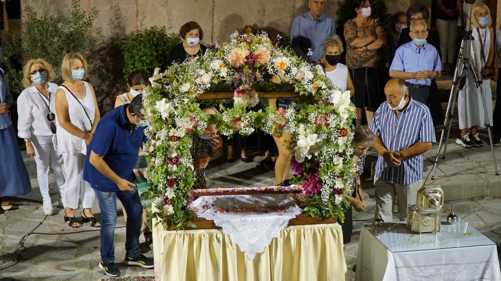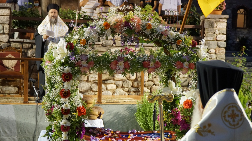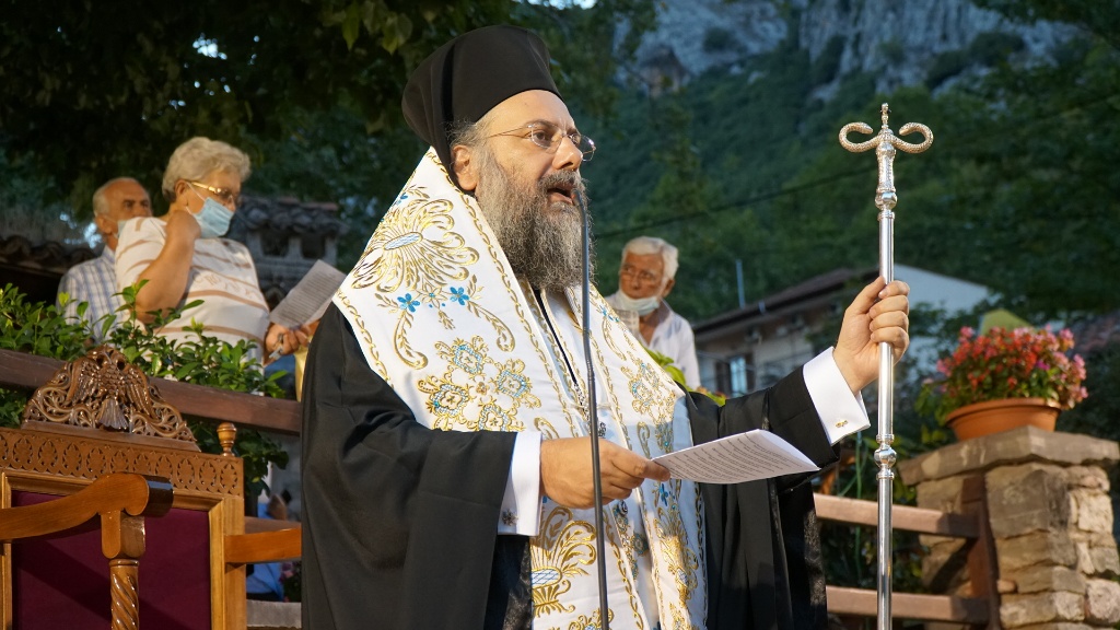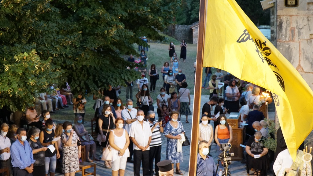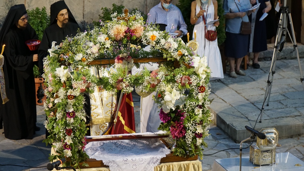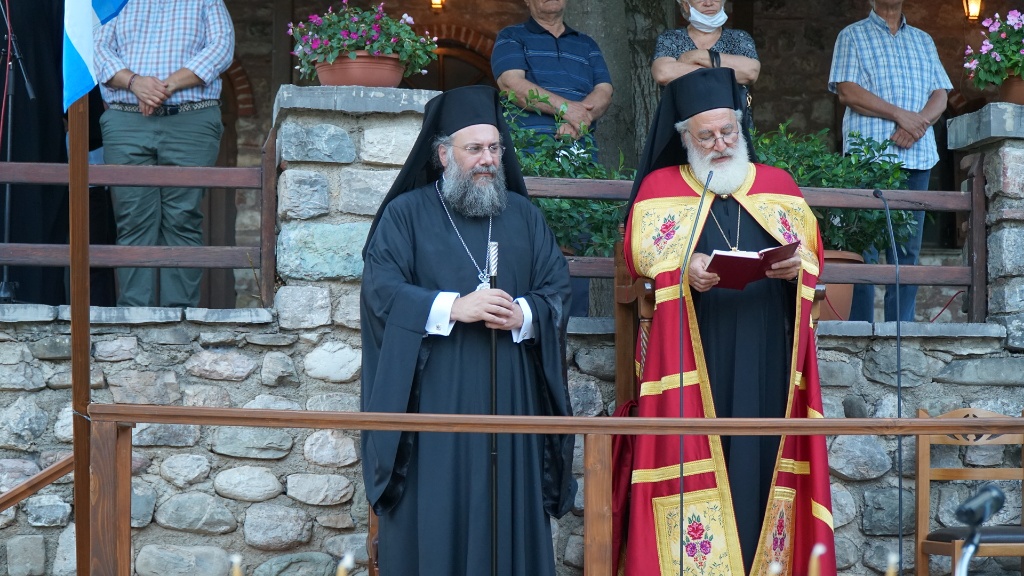 Το Σάββατο 22 Αυγούστου 2020 κατά την Ακολουθία του Εσπερινού Χοροστάτησε ο Σεβασμιώτατος Μητροπολίτης Αρκαλοχωρίου, Καστελλίου και Βιάννου κ. Ανδρέας και συγχοροστάτησε ο Σεβασμιώτατος Μητροπολίτης Τρίκκης και Σταγών κ. Χρυσόστομος, πλαισιωμένοι αμφότεροι από πατέρες της Ιεράς Μονής Δουσίκου και κληρικούς της Ιεράς Μητροπόλεως.
