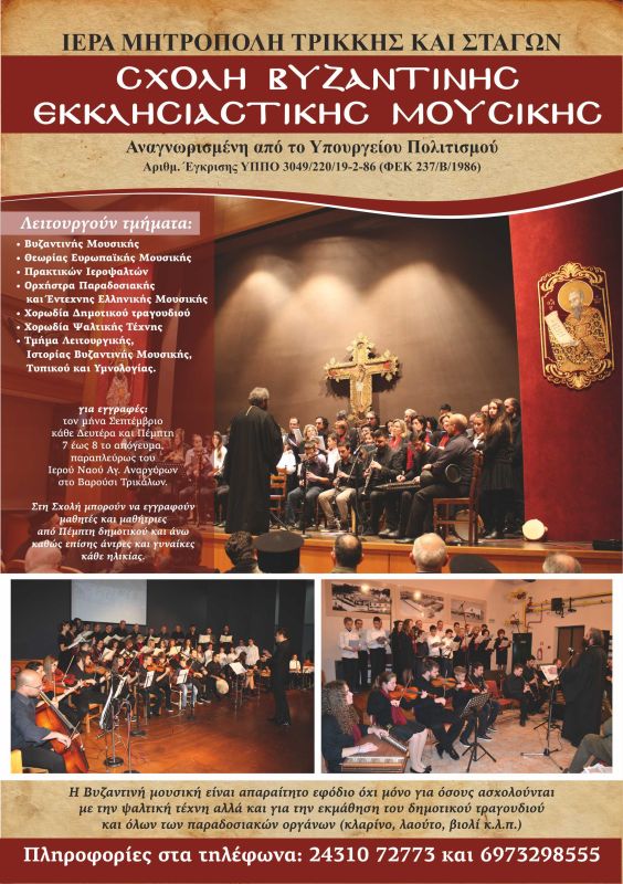 Έναρξη εγγραφών στη Σχολή Βυζαντινής Μουσικής της Ιεράς μας Μητροπόλεως